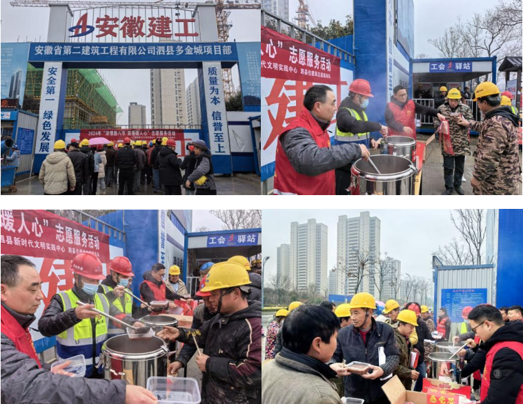 1月18日,第一公司泗縣多金城項(xiàng)目部聯(lián)合主管部門開展了“濃情臘八節(jié) 粥香暖人心”公益志愿服務(wù)活動(dòng),項(xiàng)目部連續(xù)三年開展此類公益活動(dòng),每年的臘八前夕項(xiàng)目管理人員都會(huì)提前準(zhǔn)備糯米、小米、紅豆、蓮子等制作食材,用兩個(gè)多小時(shí)精心熬制兩大桶熱騰騰的臘八粥,為堅(jiān)守在崗位上的工人送上溫暖和關(guān)懷。