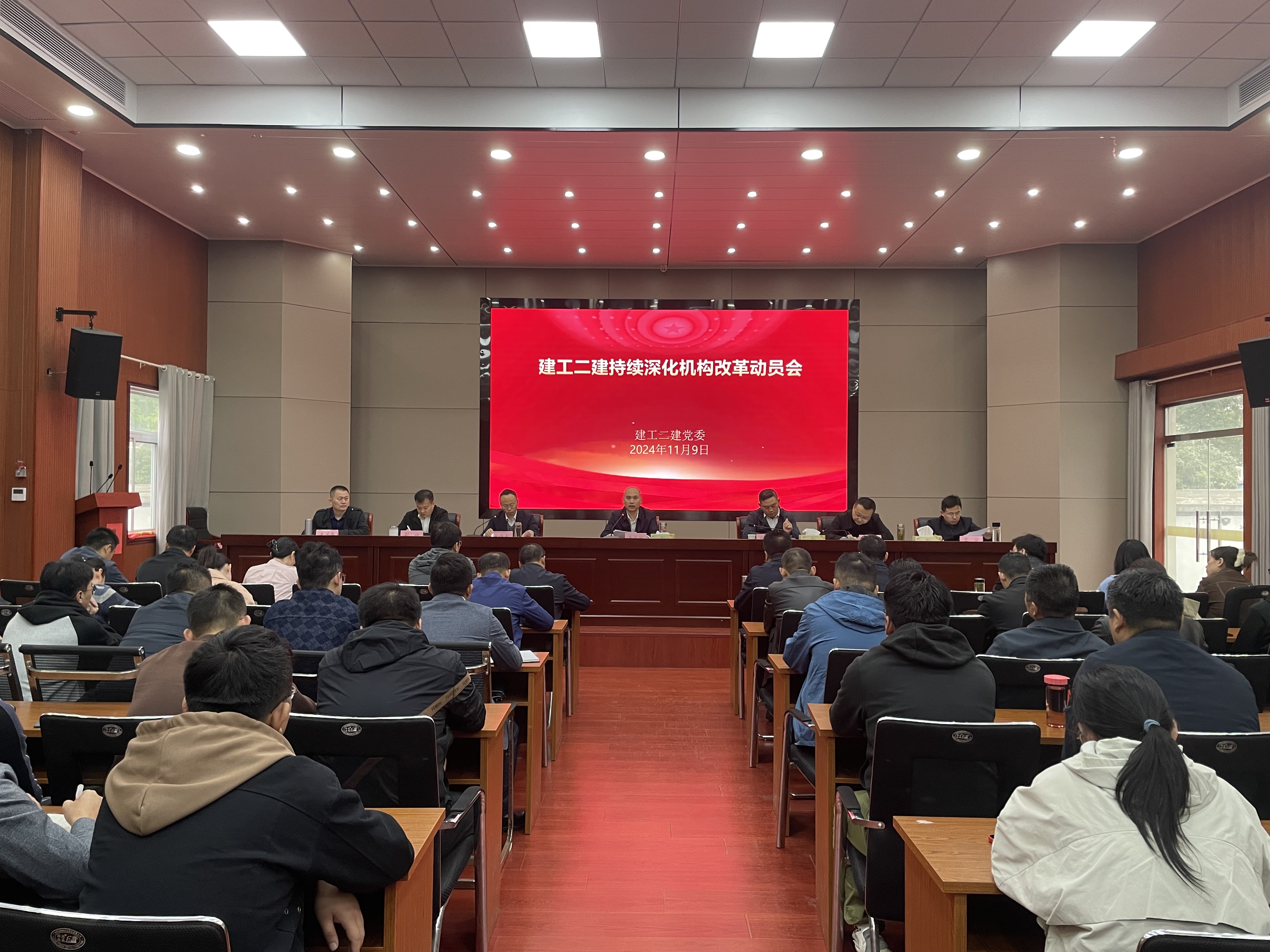 11月9日上午,建工二建召開持續深化機構改革動員會,部署進一步深化機構改革相關工作。建工股份黨委委員、副總經理,建工二建黨委書記、董事長朱忠明出席會議并講話,建工二建領導班子成員參加會議。