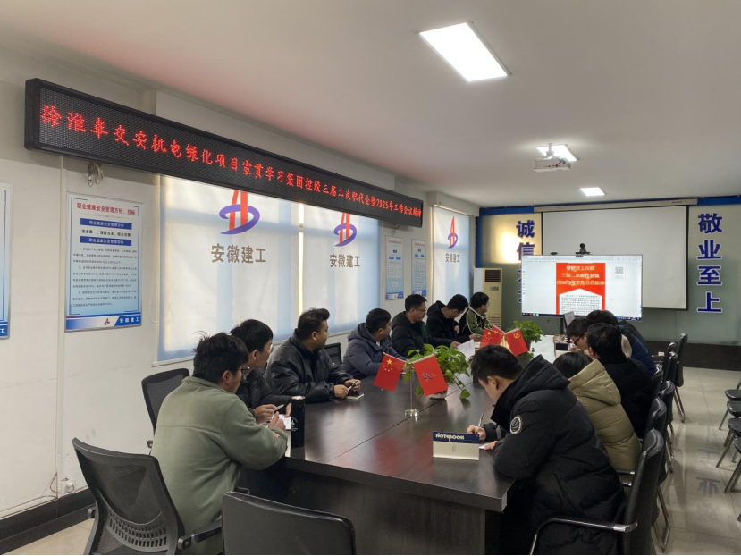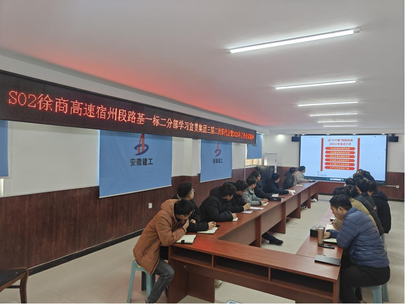 近日 ,安徽建工建設投資發展有限公司組織徐淮阜交安機電綠化項目部和S02徐商高速宿州段一標二分部項目學習宣貫集團三屆二次職代會暨2025年工作會議精神,確保會議精神在項目一線落地生根。