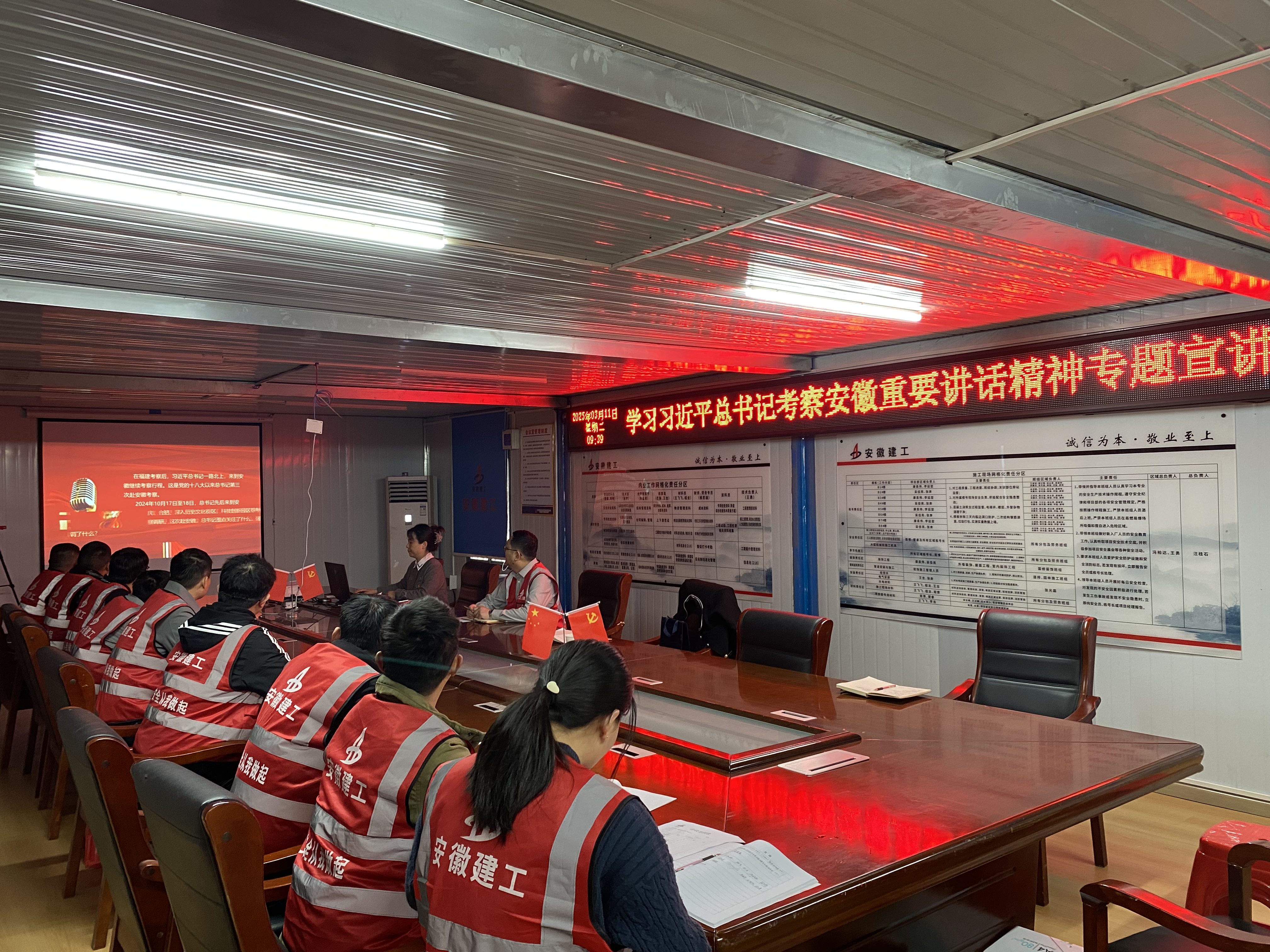 徐晶晶圍繞習(xí)近平總書(shū)記考察安徽重要講話精神,詳細(xì)解讀了觀古巷、看新城、謀未來(lái)等內(nèi)容。會(huì)議強(qiáng)調(diào)要堅(jiān)持黨建引領(lǐng),充分發(fā)揮基層黨支部的戰(zhàn)斗堡壘作用和黨員的先鋒模范作用。隨后項(xiàng)目經(jīng)理汪桂石傳達(dá)學(xué)習(xí)了安徽建工集團(tuán)三屆二次職代會(huì)暨2025年工作會(huì)議精神及公司二屆一次職代會(huì)精神。