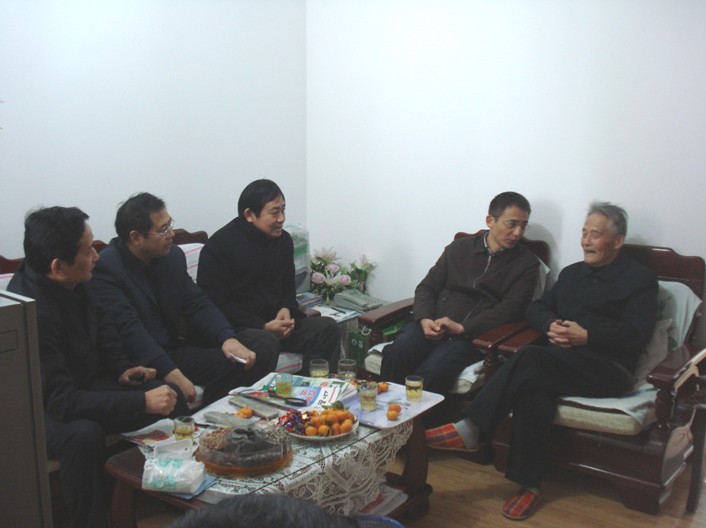方無(wú)書記在公司老勞模王紹衡家與其親切交談