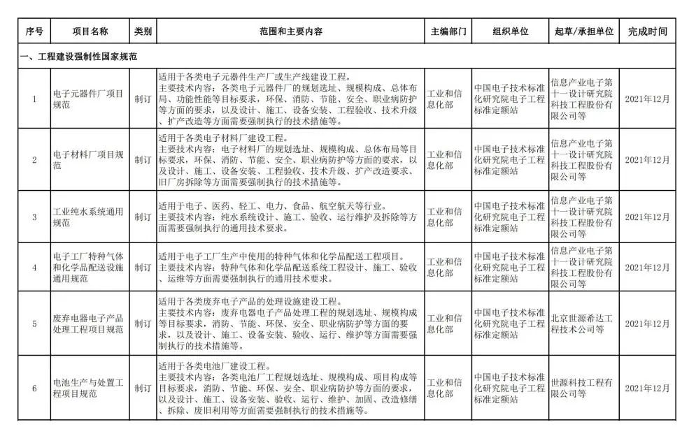《2021年工程建設規范和標準編制及相關工作計劃(征求意見稿)》(部分)