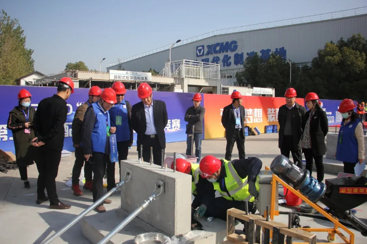賽前還舉行了隆重的開幕式,開幕式由江蘇省建筑產業現代化創新聯盟會長、競委會副主任委員紀迅主持,江蘇省住房和城鄉建設廳黨組成員、副廳長劉大威,江蘇省建筑產業現代化創新聯盟專家委員會主任委員、本次比賽的裁判長徐學軍,徐工集團黨委書記、董事長邱成,徐州市住房和城鄉建設局局長仇玲柱等出席開幕式。