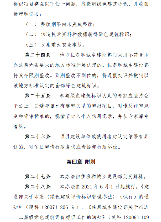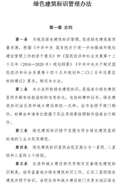 近日,住房和城鄉建設部印發《綠色建筑標識管理辦法》(以下簡稱《辦法》),要求各地住房和城鄉建設主管部門結合實際認真貫徹執行。