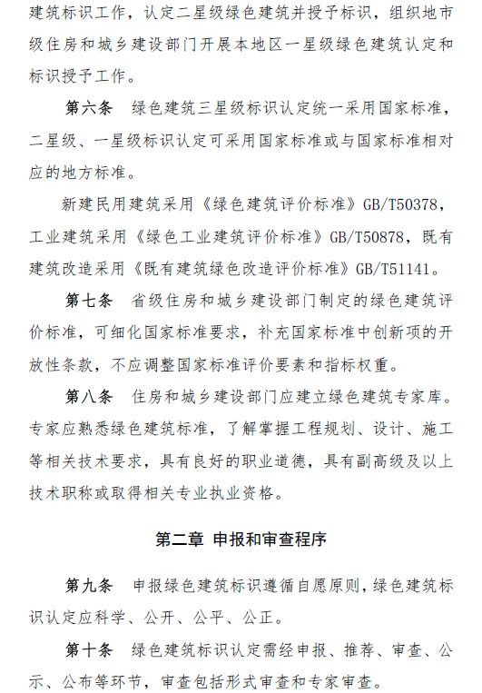 《辦法》要求,綠色建筑三星級標識認定統一采用國家標準,二星級、一星級標識認定可采用國家標準或與國家標準應的地方標準。