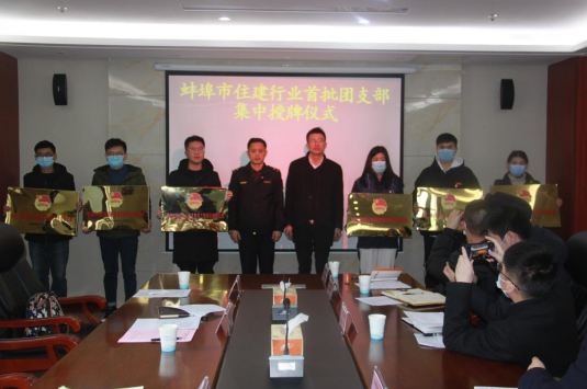 2021年2月2日上午,蚌埠市住房城鄉(xiāng)建設(shè)行業(yè)首批團(tuán)支部集中授牌儀式在蚌埠市住建局舉行。會(huì)議由蚌埠市住建局副縣級(jí)領(lǐng)導(dǎo)王明芳主持。蚌埠市住建局黨委書記、局長(zhǎng)王家渠,黨委委員、副局長(zhǎng)汪文學(xué);蚌埠市團(tuán)市委黨組副書記韓見,組織部部長(zhǎng)、少年部部長(zhǎng)雷蕾;蚌埠市建筑管理處黨委書記、主任唐士全,團(tuán)委書記韓道斌;蚌埠市住建系統(tǒng)團(tuán)工委書記鄒振飛同志出席授牌儀式。安徽二建公司蚌埠溪湖湖山春曉、山香安置房項(xiàng)目參加市住建行業(yè)首批團(tuán)支部集中授牌。