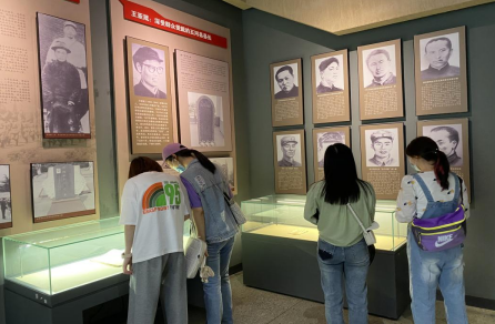 大家來到陳列館,館內陳列著有代表性的從第一、第二次國內革命戰(zhàn)爭時期至社會主義建設時期烈士的光輝業(yè)績。接著,到紀念碑前,全體團員青年莊嚴宣誓,重溫入團誓詞。