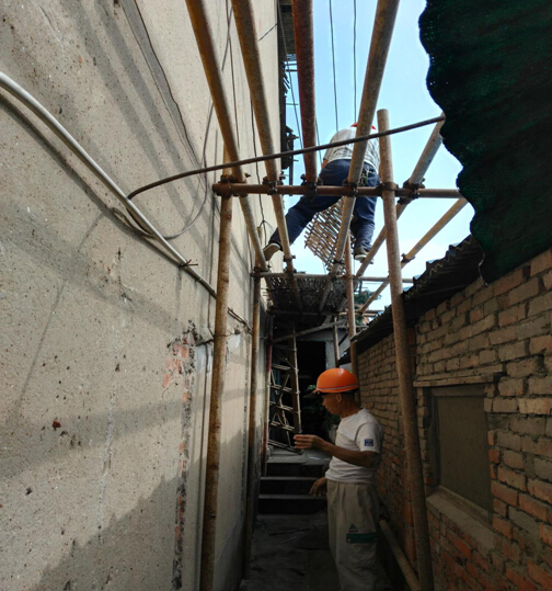 近日,公司后勤綜合服務(wù)部在對(duì)公司老舊房屋進(jìn)行日常巡查時(shí)發(fā)現(xiàn),原四分公司生活基地大禮堂山墻檐口出現(xiàn)間斷式沉降斷裂。經(jīng)檢查,此處的問題是由墻體自重及屋面木質(zhì)結(jié)構(gòu)自然腐朽所導(dǎo)致的。山墻腳即是住戶出入通道,隨時(shí)有墜落傷人的安全隱患。鑒于大禮堂層高十幾米,無法實(shí)施維修處理,我部第一時(shí)間向領(lǐng)導(dǎo)匯報(bào)后,及時(shí)拿出整頓方案,頂著烈日高溫,立即沿山墻搭建一條十幾米長(zhǎng)的鋼管架安全通道,排除了隱患,確保居民出入平安。