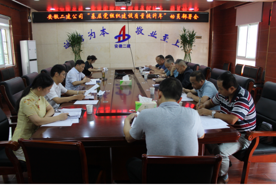 9月2日上午,安徽二建公司在一樓會議室召開了“基層黨組織建設質量提升年”活動動員部署會,公司黨委副書記、工會主席王軍主持會議并做工作安排,黨委工作部主任、所屬各黨支部書記參加會議。